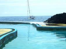 Schluck Bier oder Kaffee gehen wir in das nahe Meeresschwimmbad direkt am Strand.