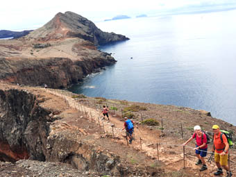 Ausblicken zum Blumendorf Prazeres. Hoch über dem Meer erreichen wir Richtung
