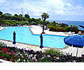 aufs Meer, Parkanlage und die Vulkane, Swimming-Pool und Restaurant. Hier können