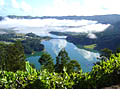 dem Ort Sete Cidades, der 7 km durchmessenden Caldeira mit den wie Perlen leuchtenden